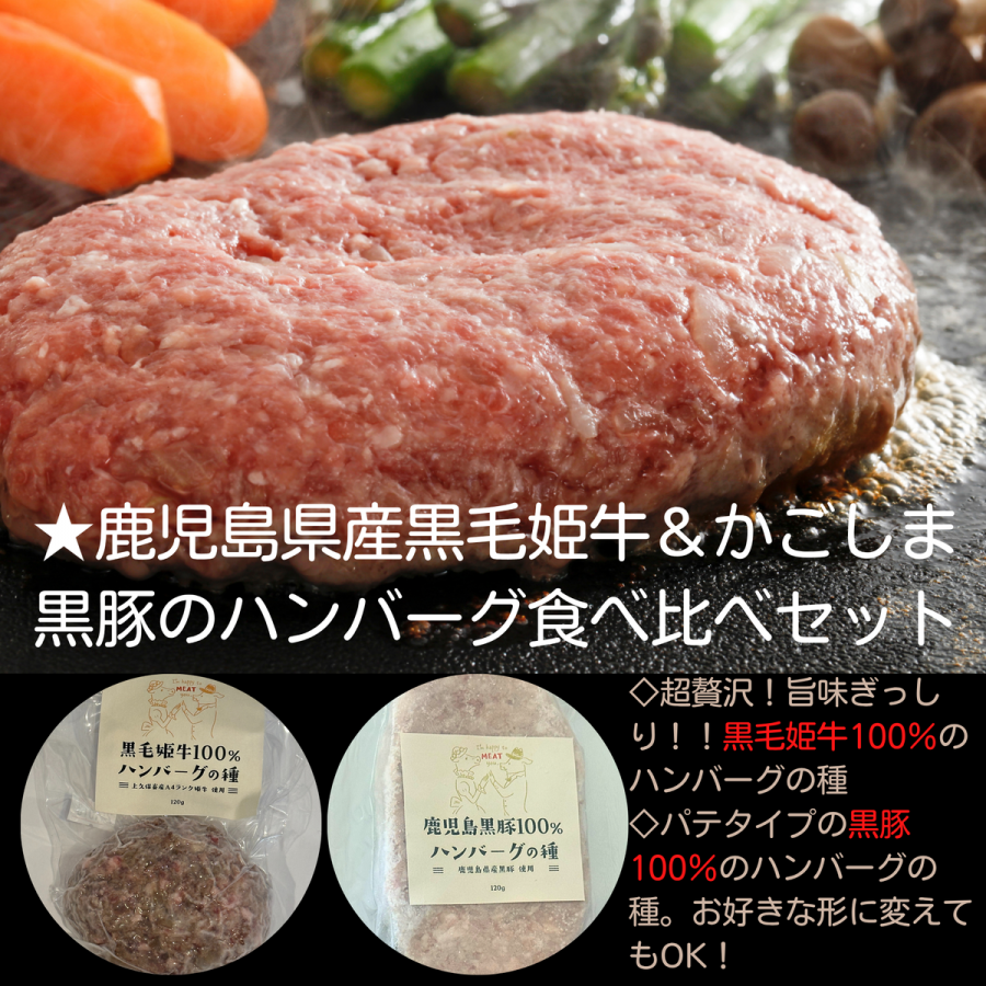 MOTTO 【ハンバーグの種】 『黒毛姫牛100%』 120g ×3個&『かごしま黒豚100%』120g×3個セットお歳暮 ギフト 贈り物 和牛 パーティー